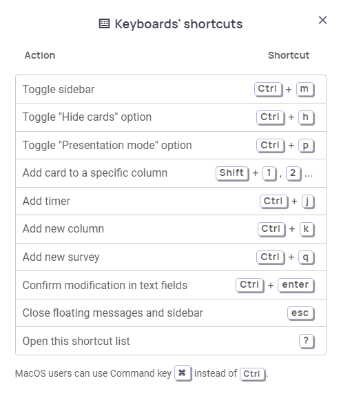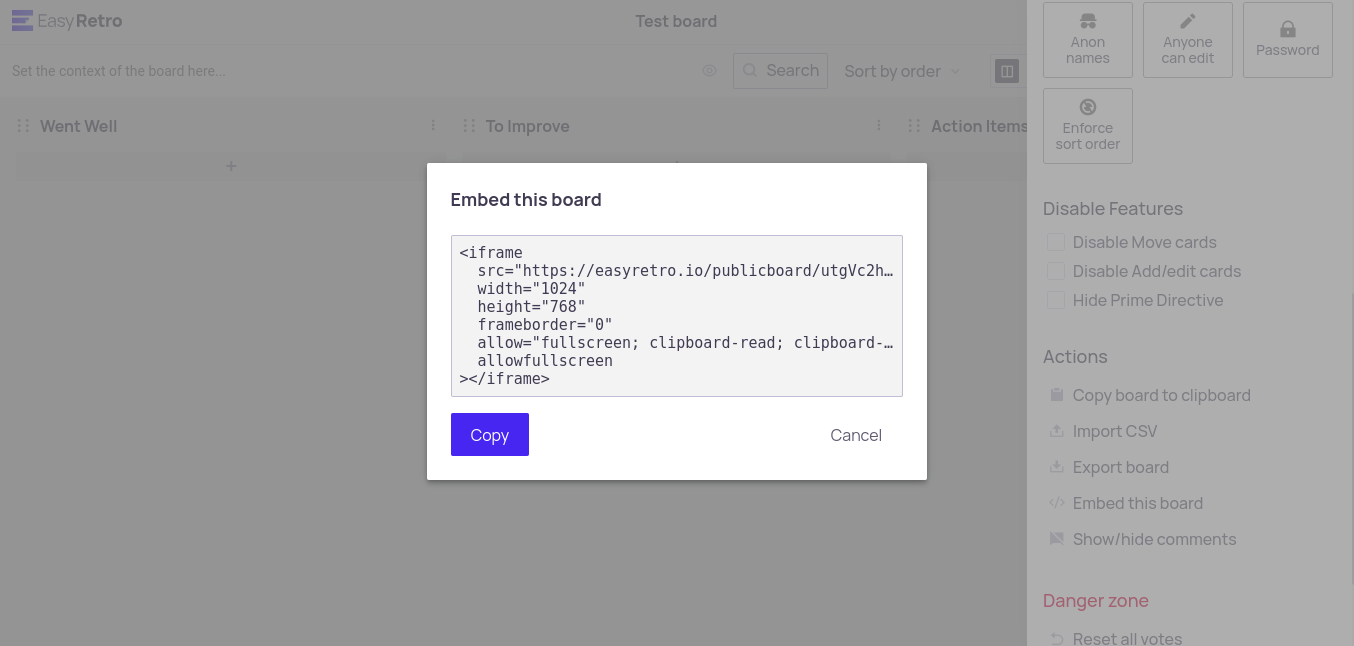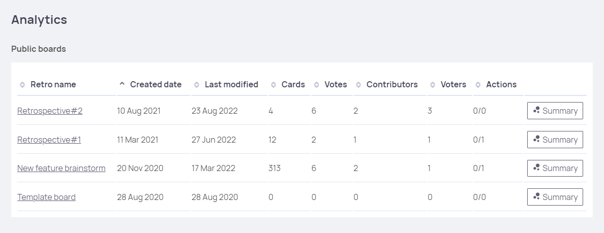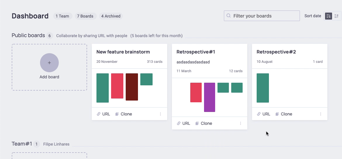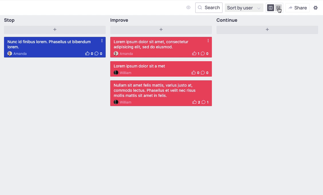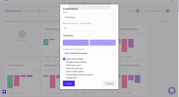 When you clone the content of a board, you will now have the added benefit of cloning its surveys as well. This improvement makes it much easier to kick-start your next retro without having to recreate the surveys from scratch.
