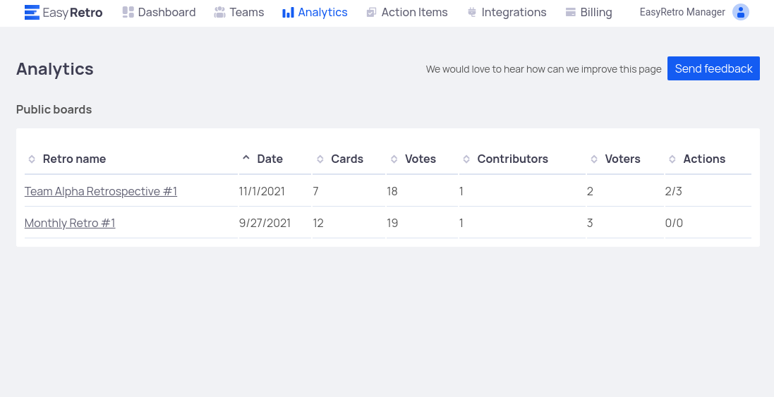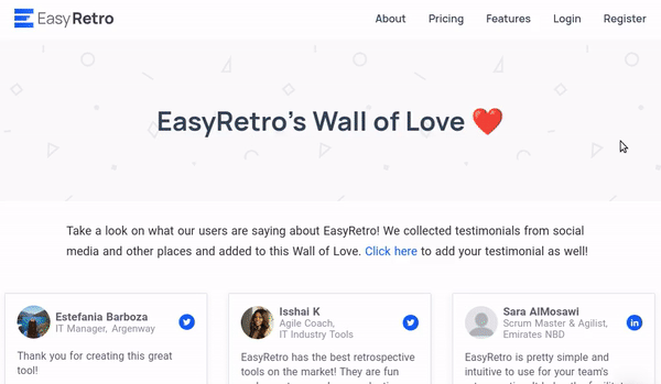 Take a look at what our users are saying about EasyRetro and leave your own testimonial!