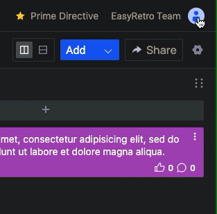 Dark mode is now avaiable in EasyRetro, you can easily toggle between dark and light mode.