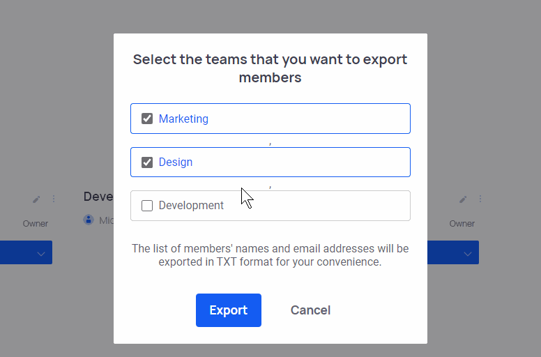 This new feature provides an easy way to share important information with stakeholders or keep a backup of your team's data. To export your organization and team members, simply navigate to the new dropdown menu in your organization's settings and select the option "Export Members".
