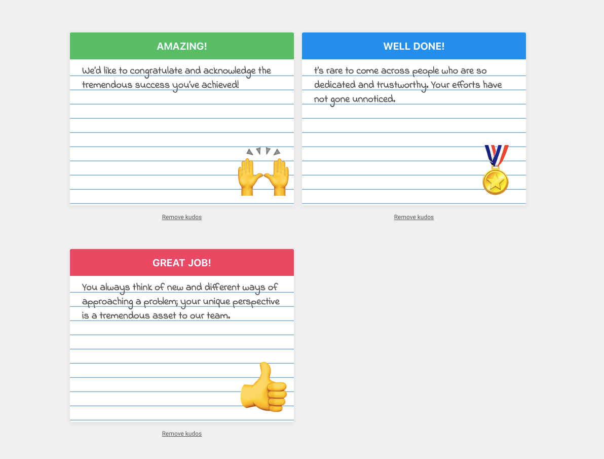 Share your feedbacks with your teammates and keep it organized with the new Kudos Wall