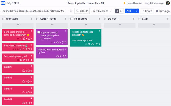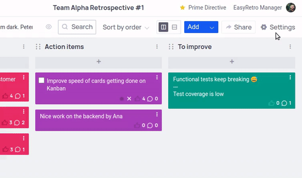 Now you can turn your cards into action items, so it's easier to keep track of the tasks your team has planned.